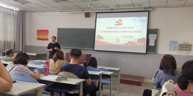 7月6日下午两点半,基础部全体教师齐集3A407教室,在直属支部书记余立勤的主持下,认真学习了习近平总书记在庆祝中国共产党成立100周年大会上的讲话,再次感受到了习近平总书记那掷地有声的话语和在中国共产党领导下欣欣向荣的新时代气象。