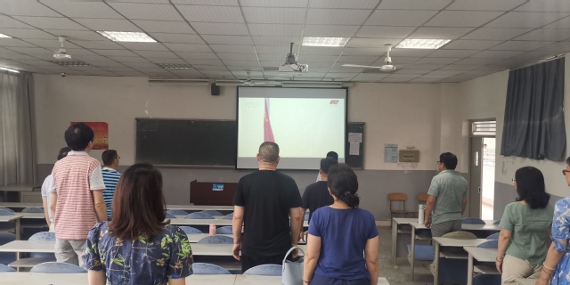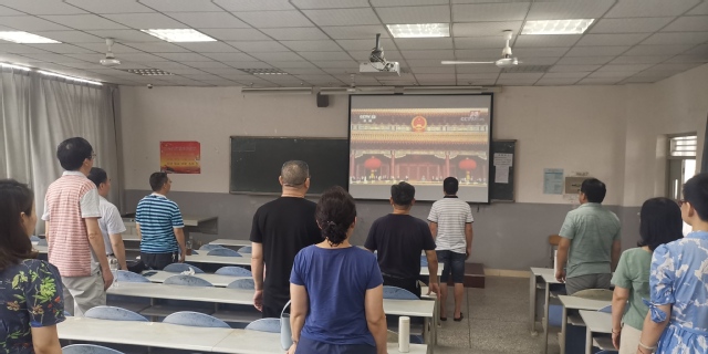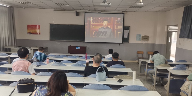 2021年7月1日,伟大的中国共产党100周年华诞之际,全国各族人民欢聚一起,注目天安门广场,共同见证这伟大的时刻,共度这欢乐喜庆的节日。早上7点50分,基础教学部所有没课教师共聚3A407教室,在直属支部书记余立勤同志的主持下,共同观看了百年庆典的实况直播,庆祝党的华诞百年,唱响新征程时代赞歌!