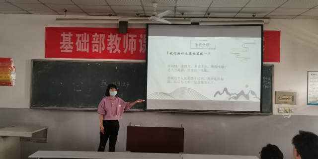 数学教研室青年教师黄弋钊、张敏分别给大家展示了《微积分》、《高等数学》两门课程的教学,其缜密的逻辑、细致的推理、切实的运用再一次让大家体会到数学学科的理性之美。语文教研室的李伟、姜娟娟和杨海涛三位青年教师则分别讲授了《大学语文》课程中的《捡麦穗》、《卜算子》、《蓼莪》三篇优美的散文与诗歌,其散文的情真意切,诗歌的语短情长,人物的形象生动,充分演绎了中华传统语言文化的无尽魅力。比赛结束后,邹毓文主任现场作了简要的点评,他充分肯定了青年教师准备充分,教学能力强,勉力他们在百尺竿头更进一步,切实担当起立德树人的根本任务。同时也号召所有教师紧跟时代步伐,共同前进。最终,五位参赛教师中的李伟老师排名第一,将代表基础教学部参加本年度的校赛。