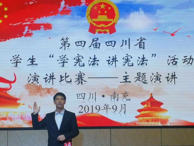 9月21日上午8:30,由四川省教育厅主办、川北医学院承办的第四届四川省学生“学宪法 讲宪法”活动(第六片区赛)在川北医学院高坪校区拉开帷幕。来自南充、遂宁、广安和德阳的十五所高校选手参加了此次比赛。我校参赛选手何俊岷在演讲比赛环节凭借出众的表现,以主题演讲、命题演讲两轮比赛均获最高分的优异成绩夺得片区赛第一名,成功晋级省赛决赛。