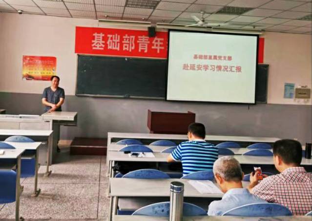 会上王主任传达了学院党委中心组(扩大)学习会议精神,明确了新学期的工作重点和目标任务,希望全体教师在新学年里不忘初心,牢记使命,守住底线,努力工作,为学院争创“双高”做贡献。随后,基础部直属党支部组织委员赵家林老师汇报了七月全体党员赴延安教育实践活动情况,语文教研组蔡彦老师汇报了参加全省信息化能力大赛备赛情况,何格老师汇报了她本人暑期在虎牙村支教的经历。老师们深受鼓舞和教育,决心振奋精神,努力开始新学期工作。