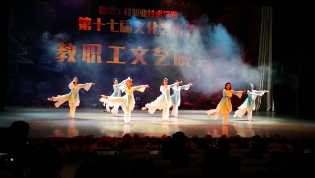 11月20日晚7:30,第十七届艺术节教职工晚会在二教演讲厅拉开帷幕。我部分工会蔡彦、黄弋钊、姜娟娟、杨海涛四位老师与三位同学合作演绎了优美的民族舞蹈《山鬼》,获得一致好评。