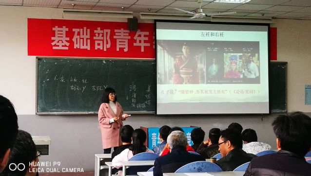 颁奖仪式后,郑辅春书记接着应邀讲话,他强调了基础部教师和课程在文化传承方面要做到“春风化雨、润物无声”,肯定了年轻教师在基本功修炼上作出的努力和已经取得的成就,并以“青年兴则国兴”来勉励他们继续努力,在立德树人上做出优异的成绩。