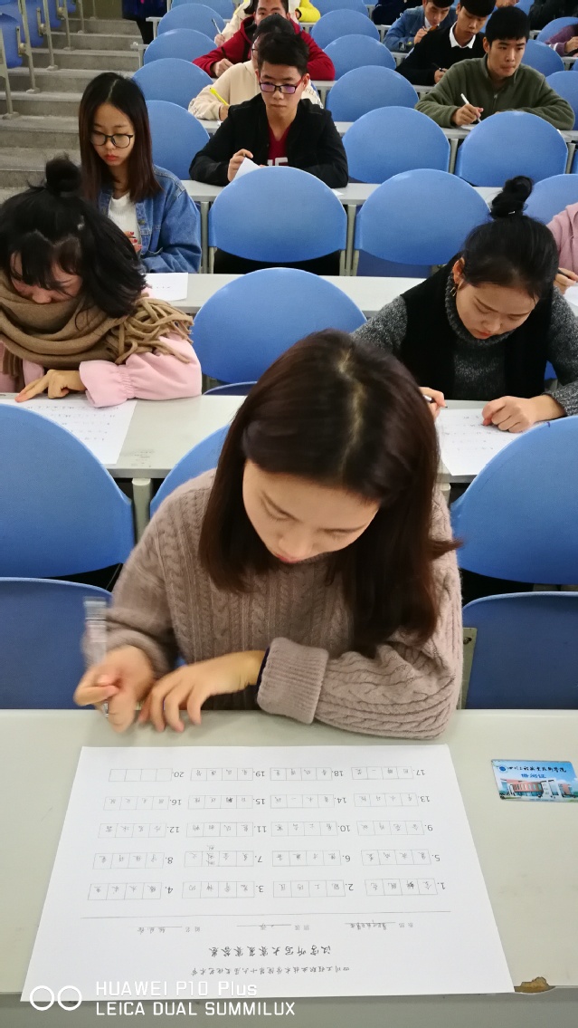 2017年11月21日下午,由基础部承办的学院第十六届文化艺术节汉字听写大赛复赛于11月21日在三A208进行,全院约200名学生经各系初赛筛选进入复赛,他们中的佼佼者将代表各系参加12月5日的总决赛。