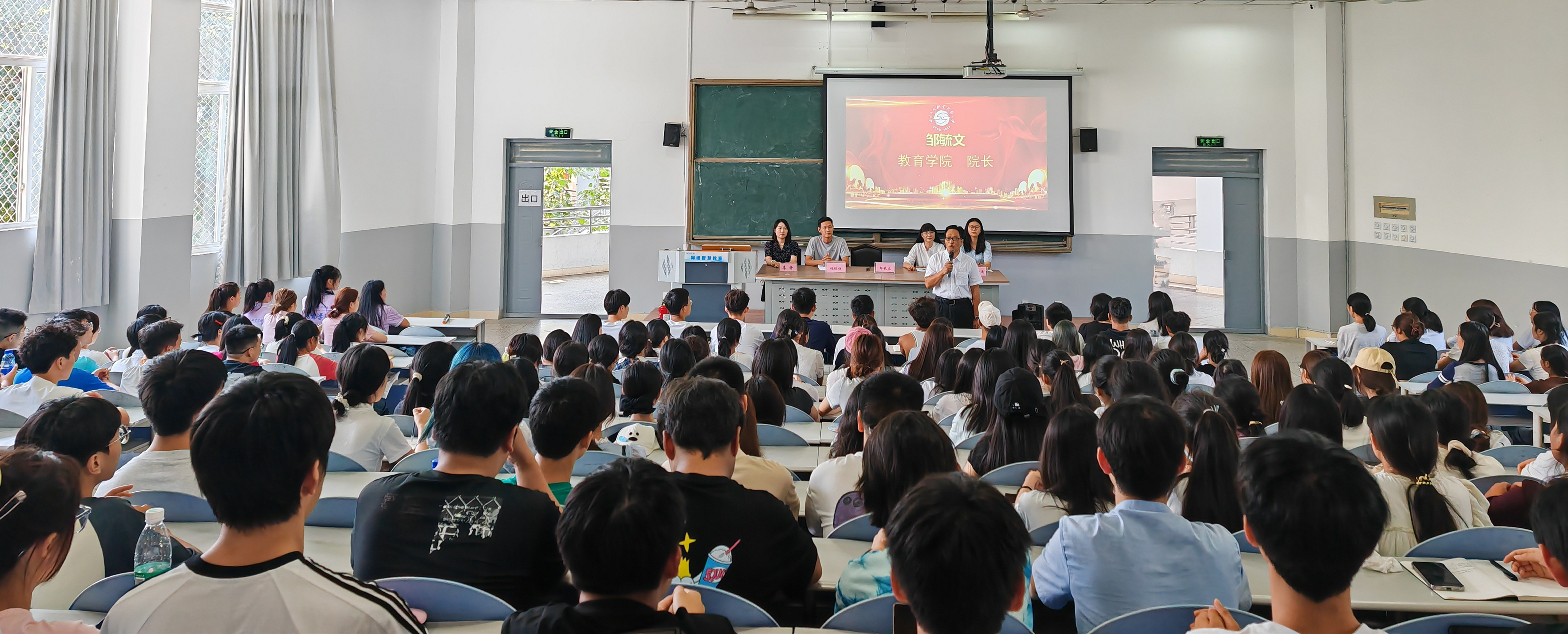 在这个金秋送爽,硕果累累的季节里,教育学院迎来了一批怀揣梦想的年轻面孔。9月10日下午,教育学院2024级新生见面会在3A208隆重举行。教育学院院长邹毓文、党总支书记李蓉、学业导师赵铁柱、团总支书记李静、学生干事张榆浇、2024级辅导员陈亚希及155名新生参加了会议。会议由教育学院学工组长郭利婷主持。