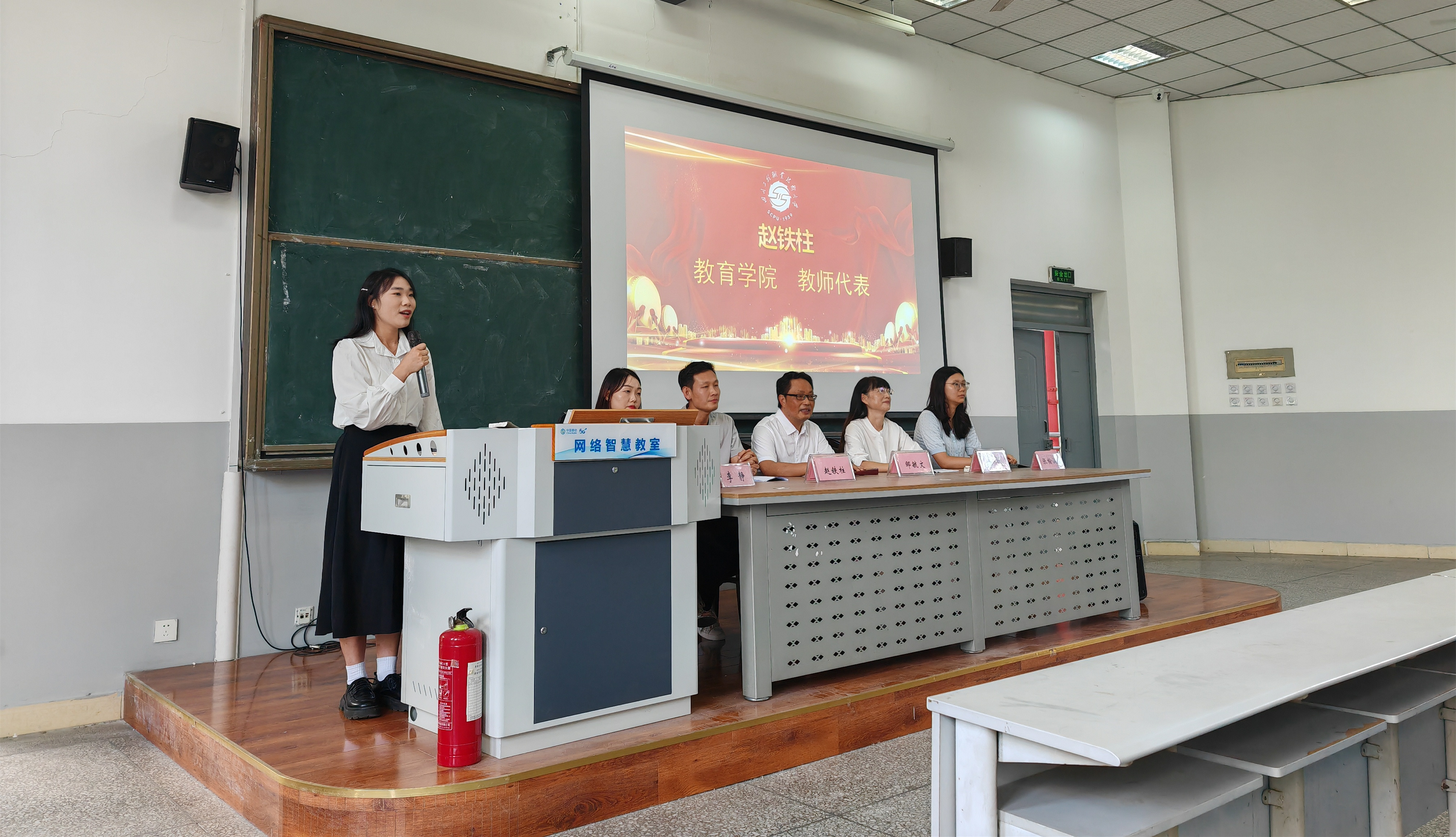 见面会上还安排了优秀学生代表发言环节。优秀学生代表2022级学前教育专业学生冉丽同学表达了自己对学前教育专业的热爱和对未来的憧憬,她以亲身的经历和感悟,向即将开始大学生活的学弟学妹们分享了四个词语:目标、主动、能力、健康,鼓励学弟学妹们要勇于面对挑战,积极承担学生干部职务和参加社会实践,激发自我潜力,实现自我提升,努力活成自己想要的模样,成为教育学院的骄傲,成为工大的骄傲。
