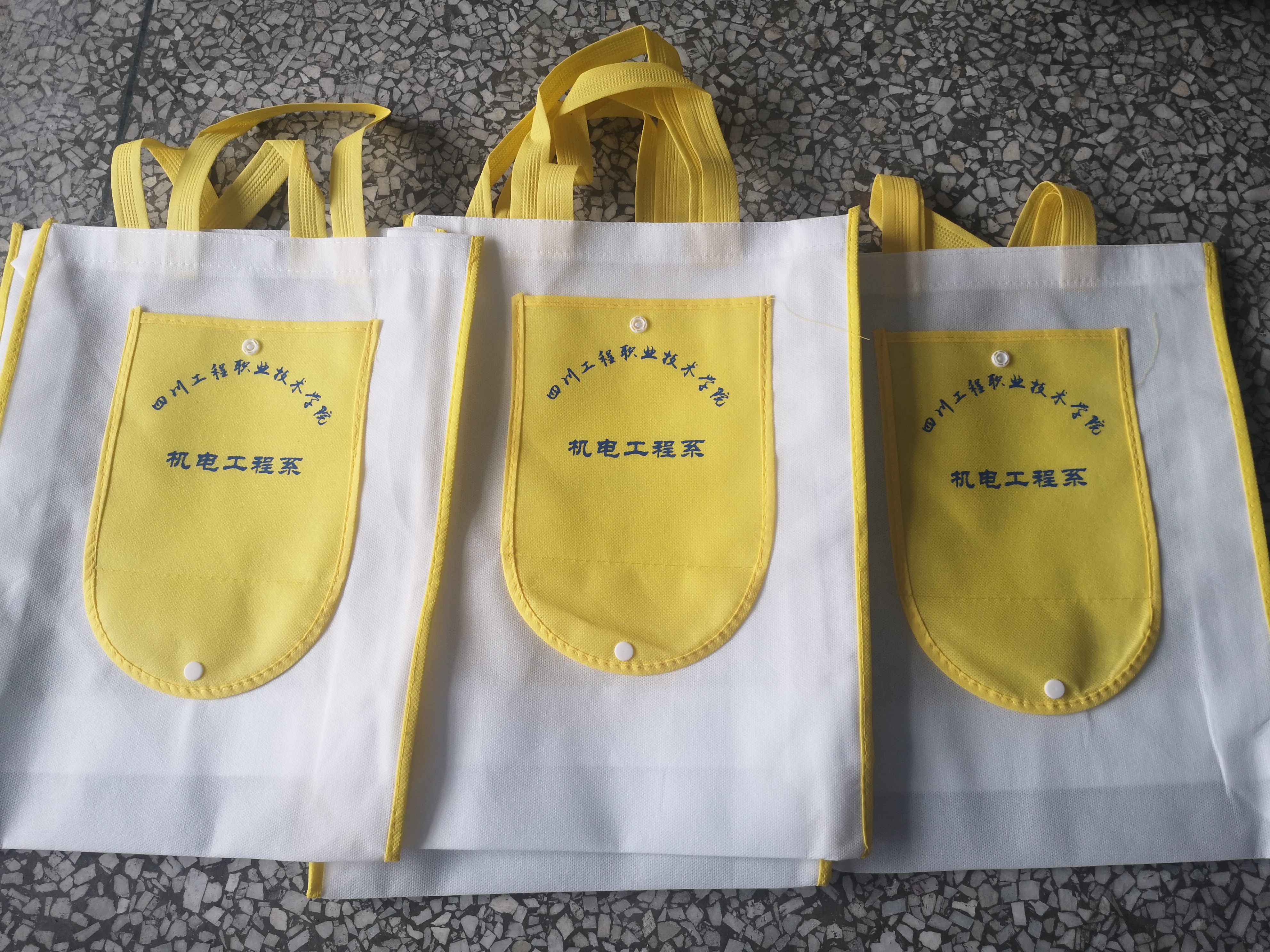 按照近几年的系部惯例,机电系为方便新生在报到时收纳领取的各种资料,制作了设计新颖、特色明显的手提袋,还专门选用了与系旗一致的颜色。在往年新生报到期间,手提袋提供的便利得到了新生和家长的好评。