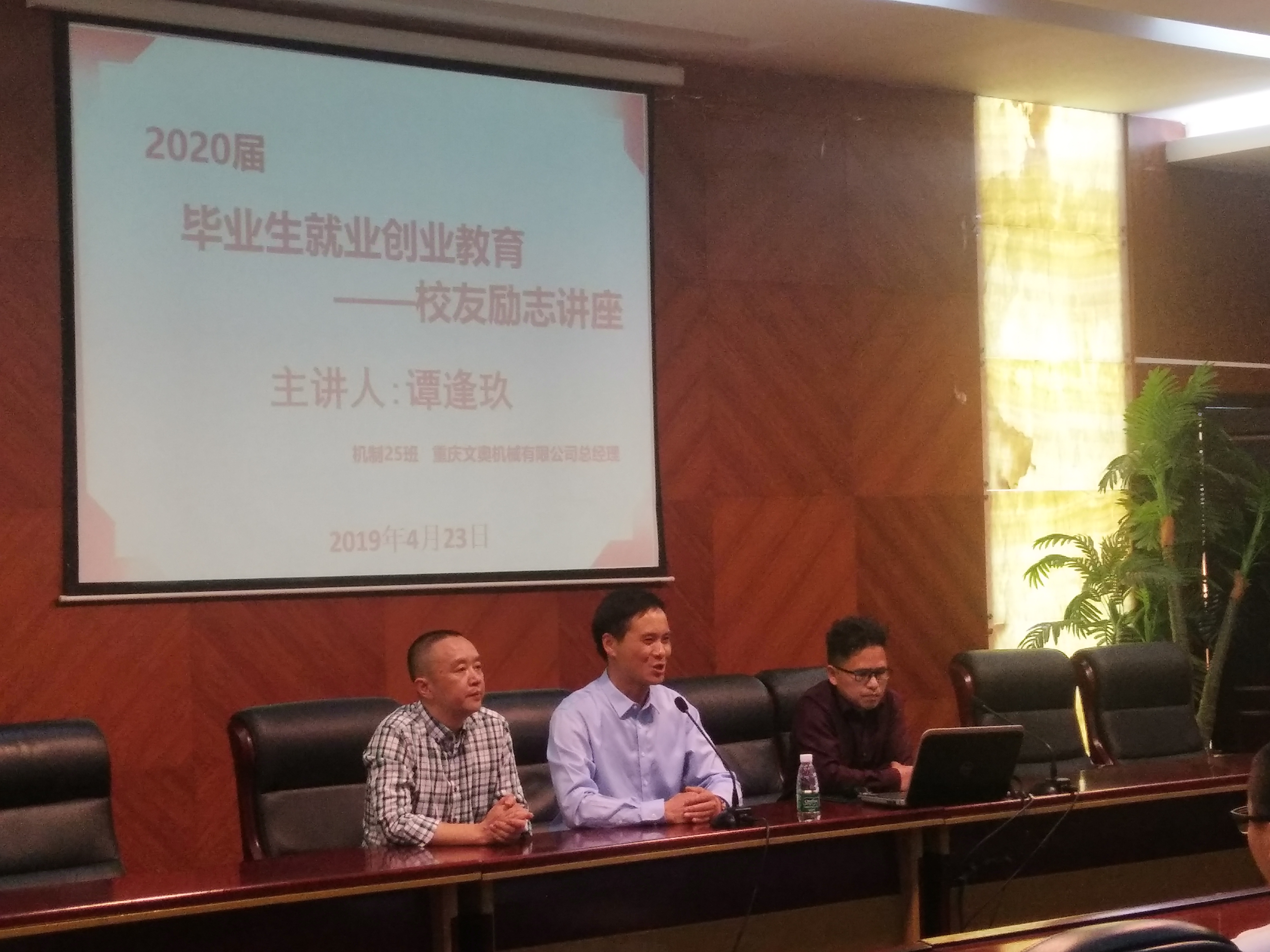 2019年4月23日下午,机电工程系组织一百余名学生参加了2020届毕业生就业创业教育——校友励志讲座,讲座在图书馆107会议室举行。院党委副书记、纪委书记郑辅春出席会议,校友重庆文奥机械有限公司总经理谭逢玖主讲。
