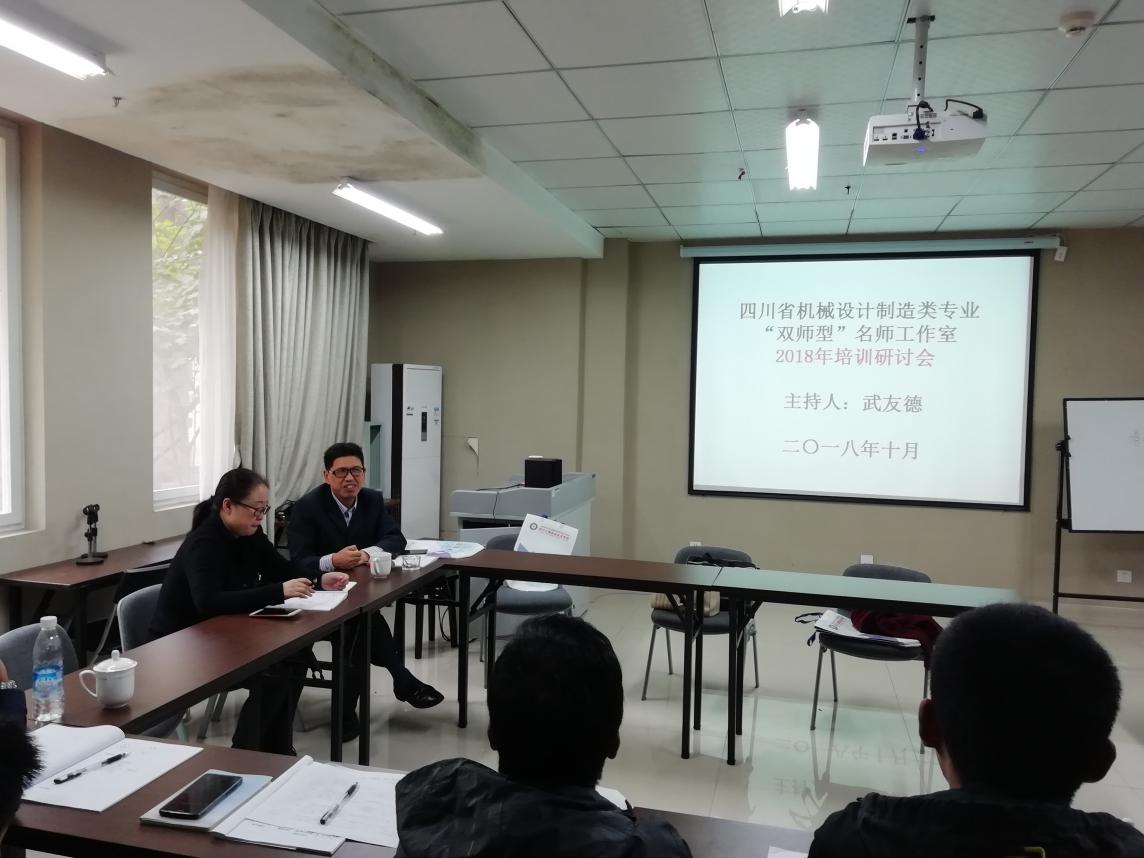 2018年10月15日,四川省机械设计制造类专业“双师型”名师工作室研讨培训会在我校举行,培训会由我校国家级教学名师武友德教授主持,来自宜宾职业技术学院、四川省中江县职业中专学校、德阳东方数控科技有限公司、绵阳职业技术学校等多所中高职院校及企业人员19人参加培训。