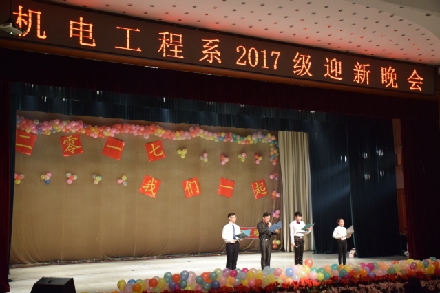 10月26日晚19:30二教的演播厅,机电系团总支学生分会举办了欢迎2017级新生的迎新晚会。本次晚会节目有歌舞、小品、朗诵、相声等12个节目。