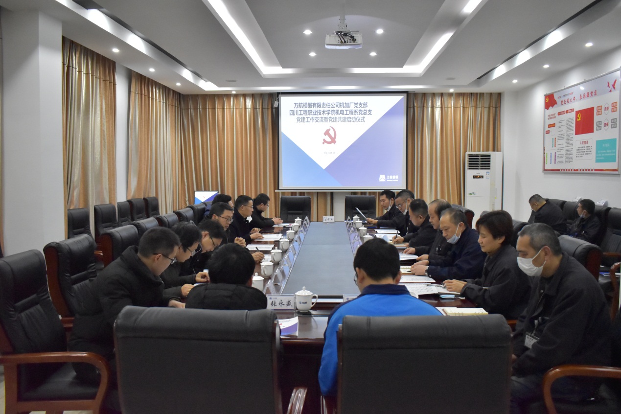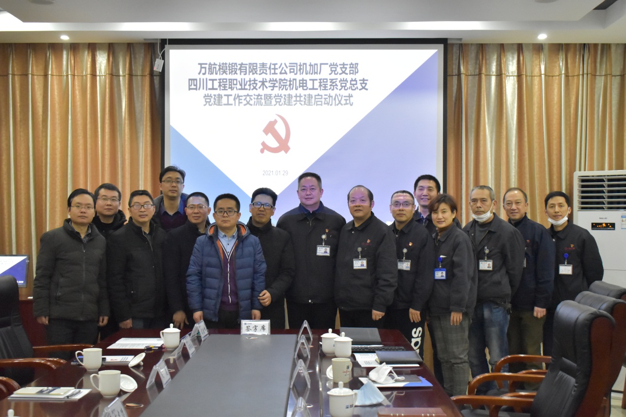 2021年1月29日上午09:00,在国机集团(中国二重)万航模锻有限责任公司第七会议室,机电工程系党总支与万航模锻有限责任公司机加厂党支部举行了“党建工作交流暨党建共建启动仪式”。机电工程系领导及部分教师代表,万航模锻有限责任公司副总经理康峰、万航模锻有限责任公司机加厂党支部书记、厂长曹坚,万航模锻机加厂副厂长王建刚等领导、技术带头人、技术骨干代表参加此次会议。
