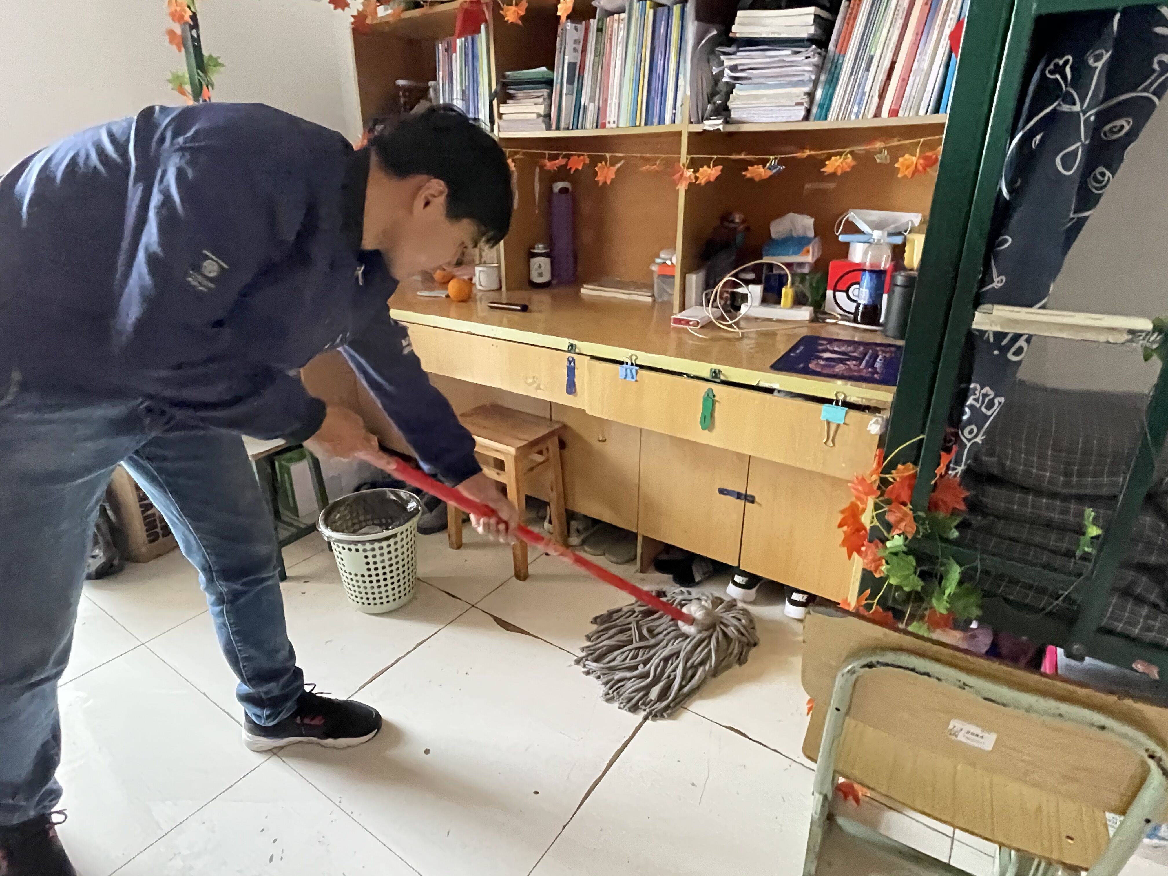 在活动过程中,同学们积极认真,为宿舍的整洁尽自己最大的一份力量。“宿舍是我家,卫生靠大家。”宿舍成员在明确各自责任区域后,立刻对打扫区域进行彻底清洁,保质高效地完成任务。最终,在大家的共同努力下,宿舍焕然一新,洁净如初。