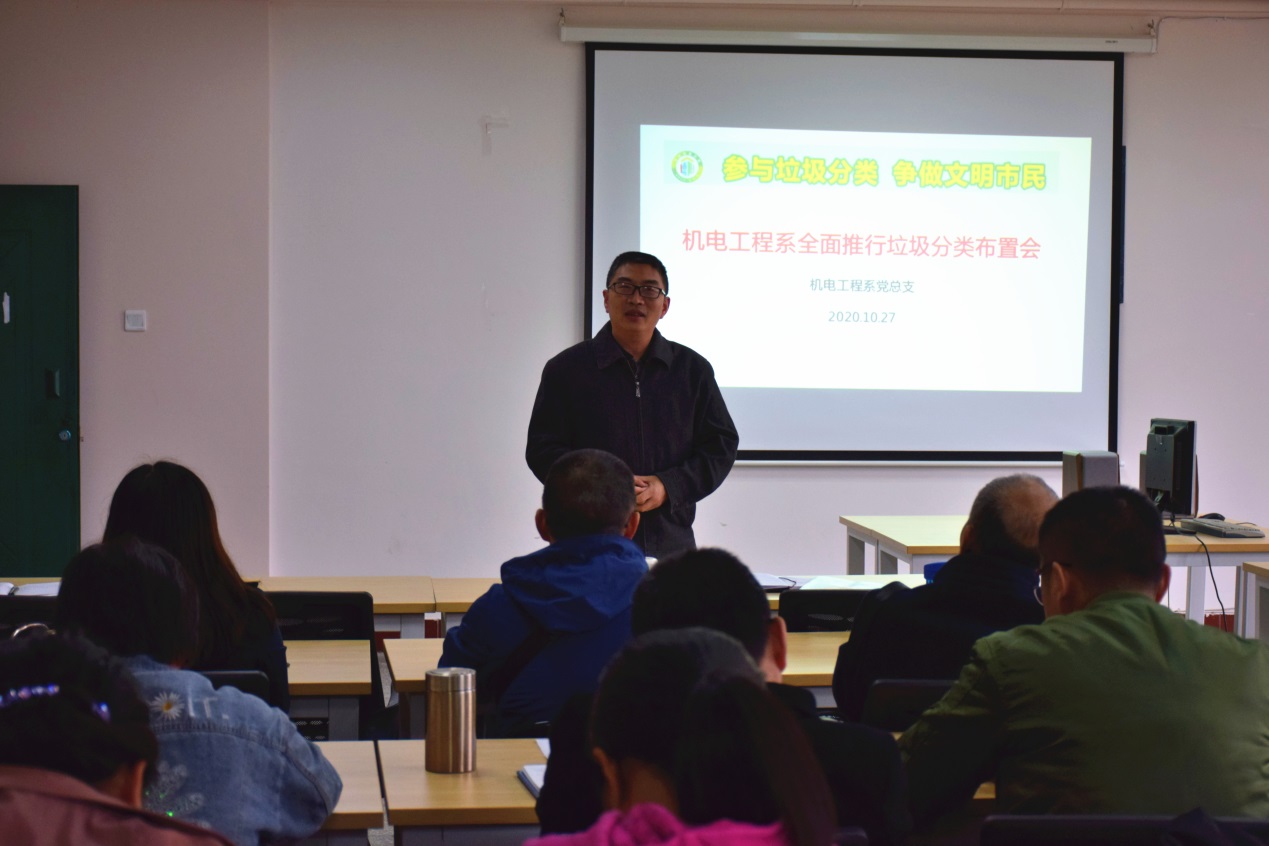 2020年10月27日,在2教307会议室,机电工程系召开了垃圾分类工作推进会,会议由机电工程系副主任冷真龙教授主持。