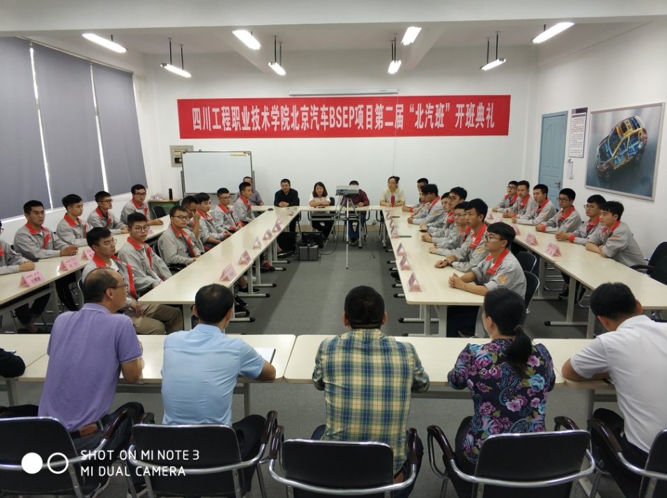 2017年初,四川工程职业技术学院与北京汽车销售有限公司开展校企合作,由交通工程系承担组建首届“北汽班”,订单式为北京汽车销售有限公司培训我院2015级汽车专业学生,首届“北汽班”毕业生优良的纪律作风和较强的学习适应能力得到了北汽各4S店的一致认可和高度评价。