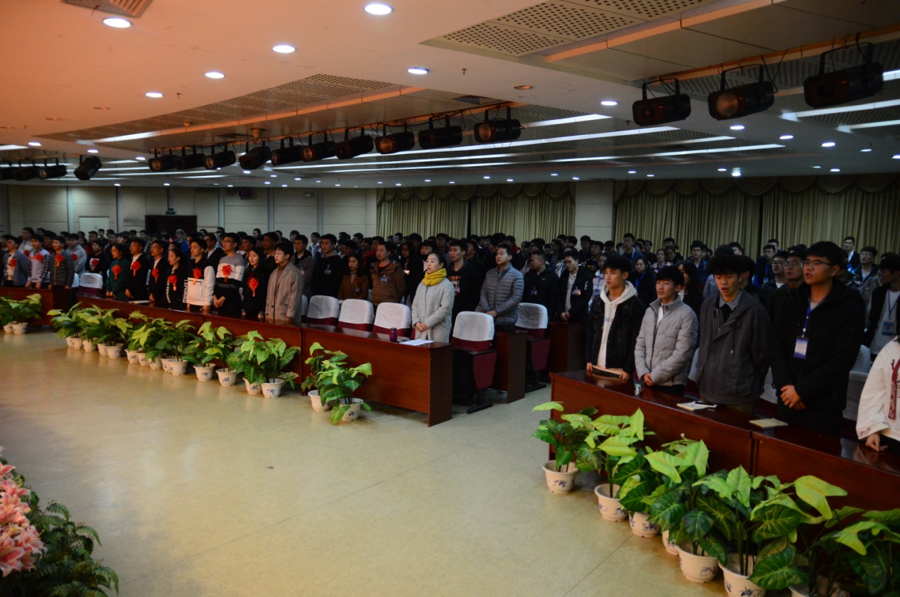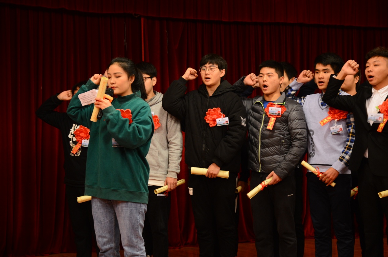 伴随着庄严的国歌声,大会拉开了序幕。首先,由2017届学生会主席赖帆同学上台对上一届学生分会工作做了简要的回顾与总结,并表达了对下一届干部的期望与鼓励。随后,明老师上台致辞,她对上一届干部的工作给予了充分的肯定,也提出了对新一届干部的要求,并宣布了2018届新任学生干部名单、2017届优秀学生干部名单和优秀部门。