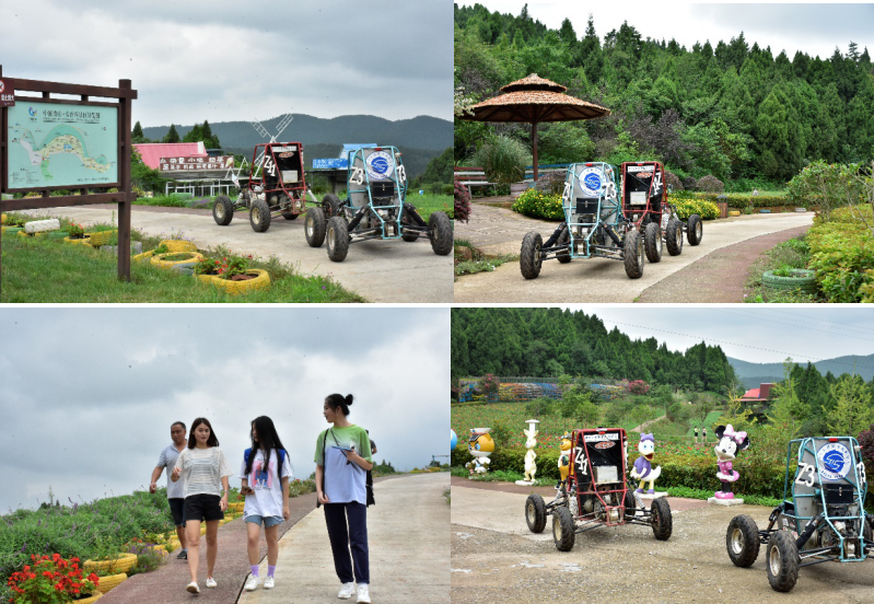 首先在工作人员的带领下队员们前往安全的场地赛车,巴哈车队队员们在赛场上畅跑,完全将赛道征服。随后,队员们进入景区内参观游览考察全地形车是否能够在景区内运用,并与工作人员交流讨论合作。