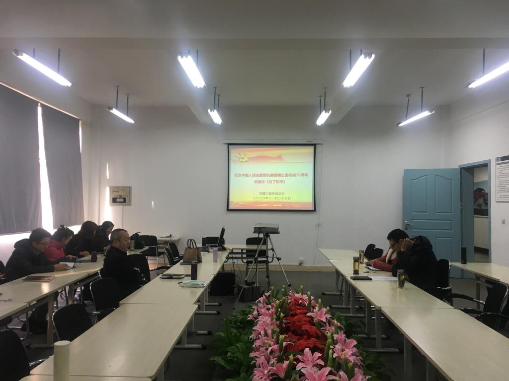 纪念中国人民志愿军抗美援朝出国作战70周年重要契机,交通工程系全体教职员工于2020年11月26日在北汽班教室观看大型电视纪录片《为了和平》。