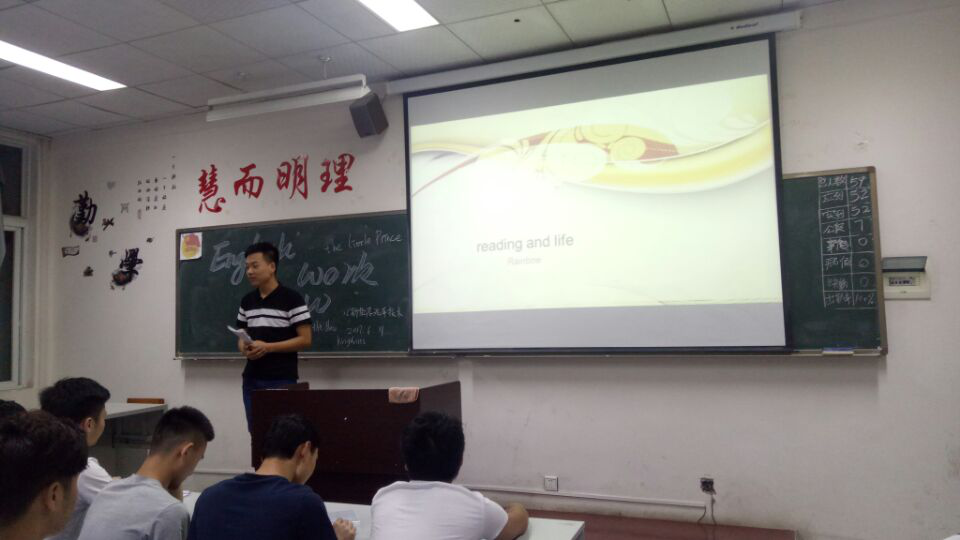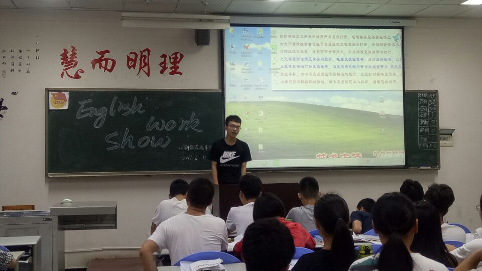 由于本次英语活动有奖品作为奖励,所以同学们在比赛之前就很早地开始准备。大家都怀着期待与紧张的心情终于迎来了英语才艺比赛活动,活动一开始就以一首动人的英文歌曲吸引了全班同学的注意力,接着又是一个个精彩的英文PPT演讲将活动推向高潮。最后,让人难忘的是全体女生的英语歌曲串烧,也给本次英语才艺展示活动画上了完美的句号。活动全场历时近2个小时,参赛同学们通过借助PPT、视频、手机等多媒体工具展示了不同主题的作品,分享了励志、运动、个人感悟等内容。比赛中,虽然有个别同学有些紧张,发挥的不是很好,但他们着实突破了自己,也提高了自己。