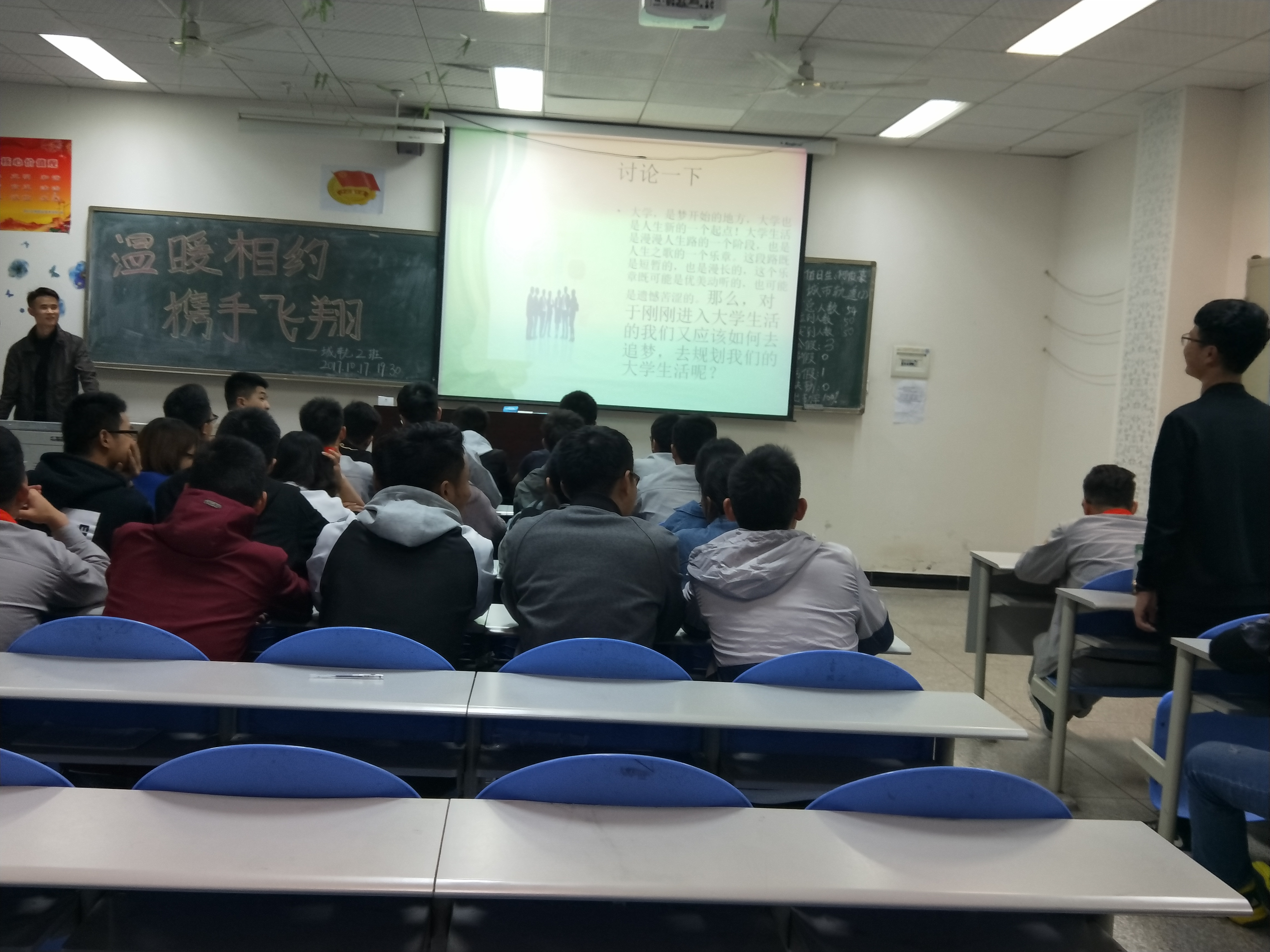 10月17日晚,由我院交通工程系学生会主办、2017城市轨道交通机电技术2班承办的以“温暖相约,携手飞翔”为主题的学习经验交流会在5c207教室举行。此次活动的宗旨是让同学们相互了解,更加和谐、团结地度过美好的大学生活,同时让同学们明确自己的目标,做好对未来三年的规划。