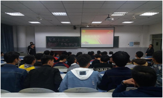 为了全面了解“十九大”实况,及时领会“十九大”精神,积极响应党的号召,深入学习党的方针政策,加强广大学生干部的党性修养,培养其政治敏感度,帮助广大团员青年正确认识国情,坚定理想信念,同时加强校风、学风建设,提高学生的党性意识和整体素质。2015级机电一体化一班于2017年10月23日晚上7点开展了“聚焦十九大—共筑中国梦”的主题班会。