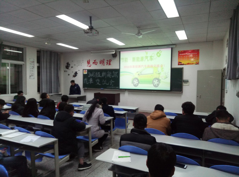 2016级新能源汽车技术1班全体同学于2018年1月1号晚上7点在5C204教室开展了一场关于以新能源汽最新发展为主题的交流会,让同学们利用班会活动时间自由交流分享当前新能源汽车专业技术和行业发展变化状况,拓展了各位同学的视野和知识面。