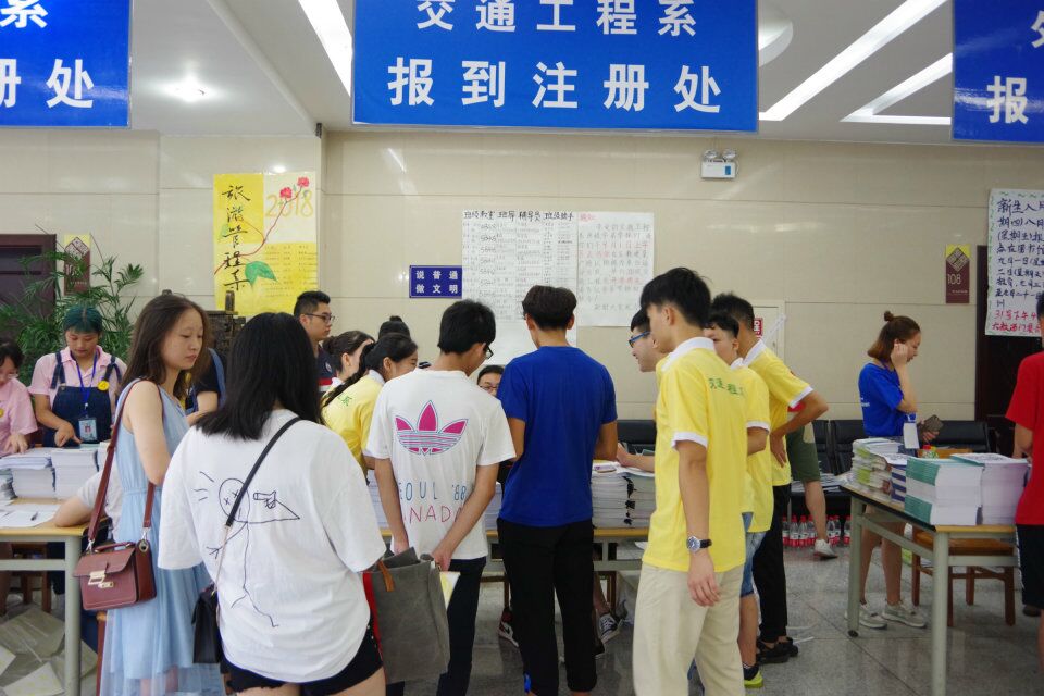 8点左右,交通系就迎来了第一批报到的新同学。志愿者们帮着拎行李,耐心的为新生和家长们解答各种问题。学弟学妹们亲切地叫着“学长学姐”,俨然已经忘却了天气的炎热和旅途疲惫,还有初来乍到的陌生感。