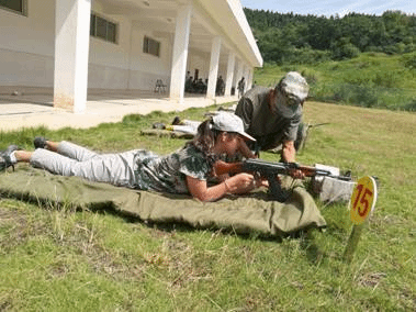 到达后,我们认认真真的的听教官讲解射击的动作要领,随后我们就上场了。同学们都按照教官教的方法,在听到总教官的一声令下,先卧倒然后持枪,左手托着枪,右手放在枪扣外准备,枪尾盯着肩部,半眯着眼从孔中瞄准,再次听到一声口令,便开始射击,“嘭”“嘭”“嘭”三发子弹便打了出去。每一颗子弹在射出去之后便会有白烟冒出,大概就可以看到子弹打在哪儿了。一声声的射击声此起彼批回荡在耳畔。