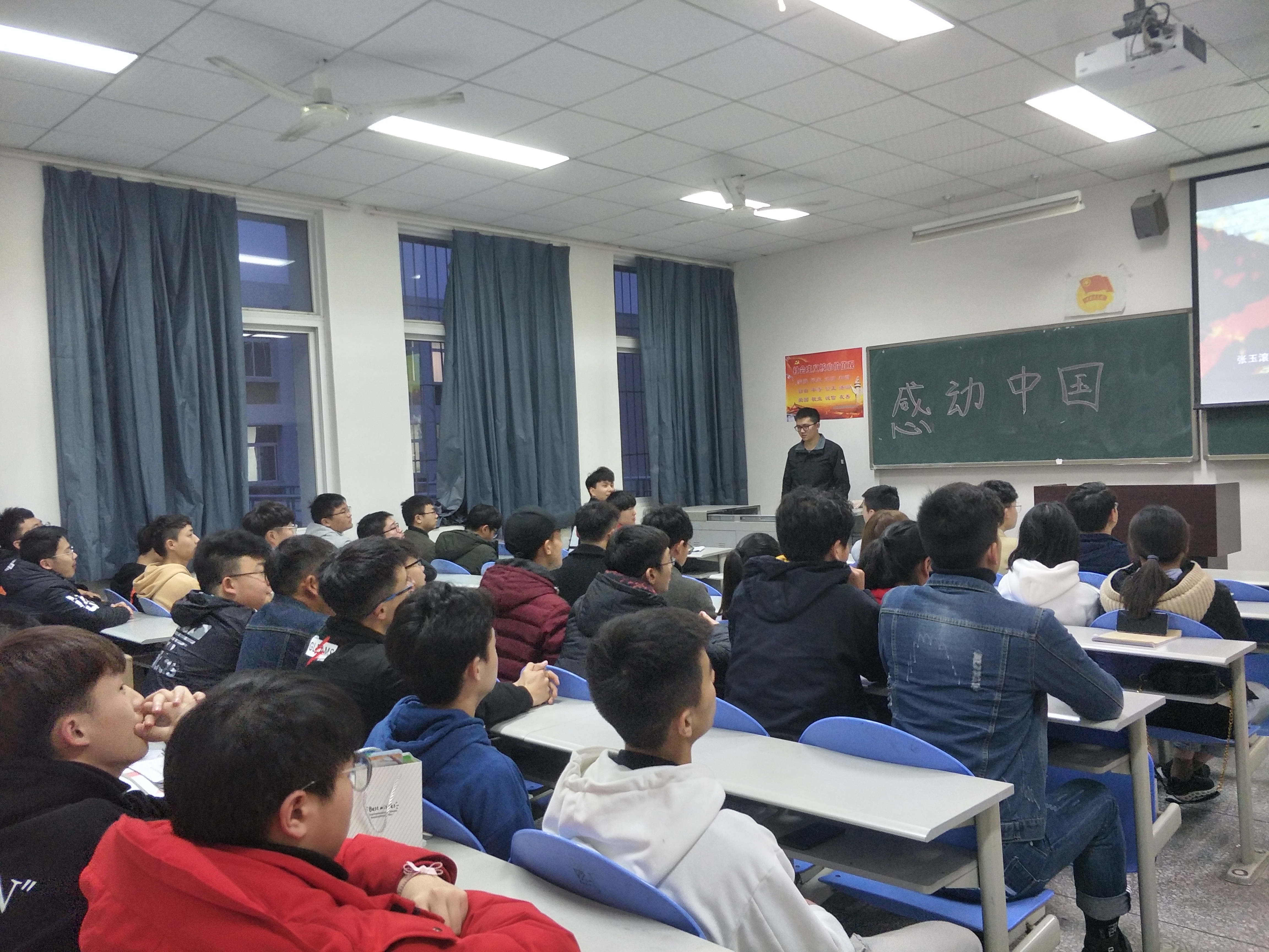 3月3日晚自习时间,我班在5b407教室开展了本月班会活动。本次班会以“感动中国”为主题,活动以观看视频为主。旨于让大学生富有爱心,社会责任感,爱国、敬业精神。树立正确的社会价值观。