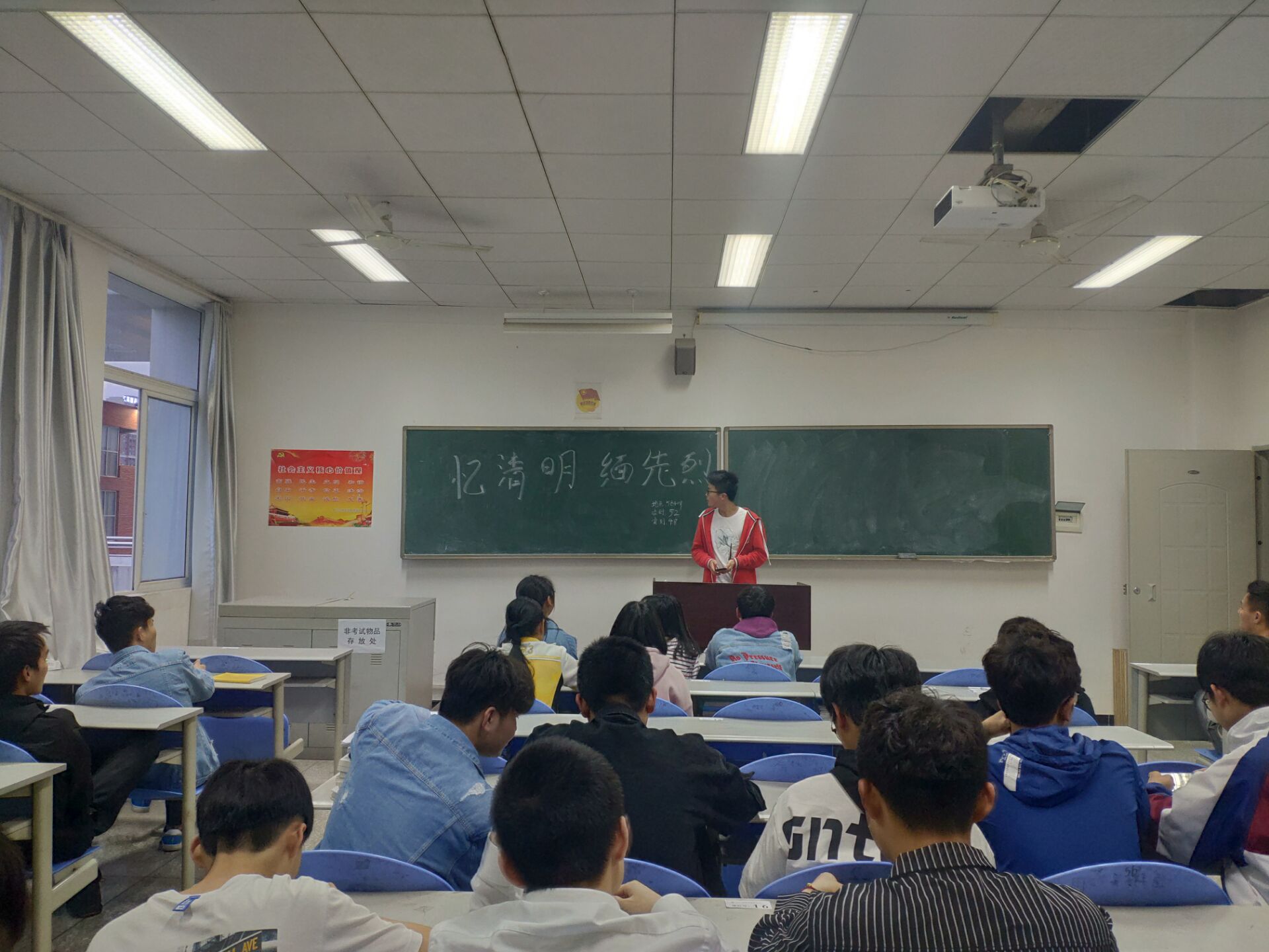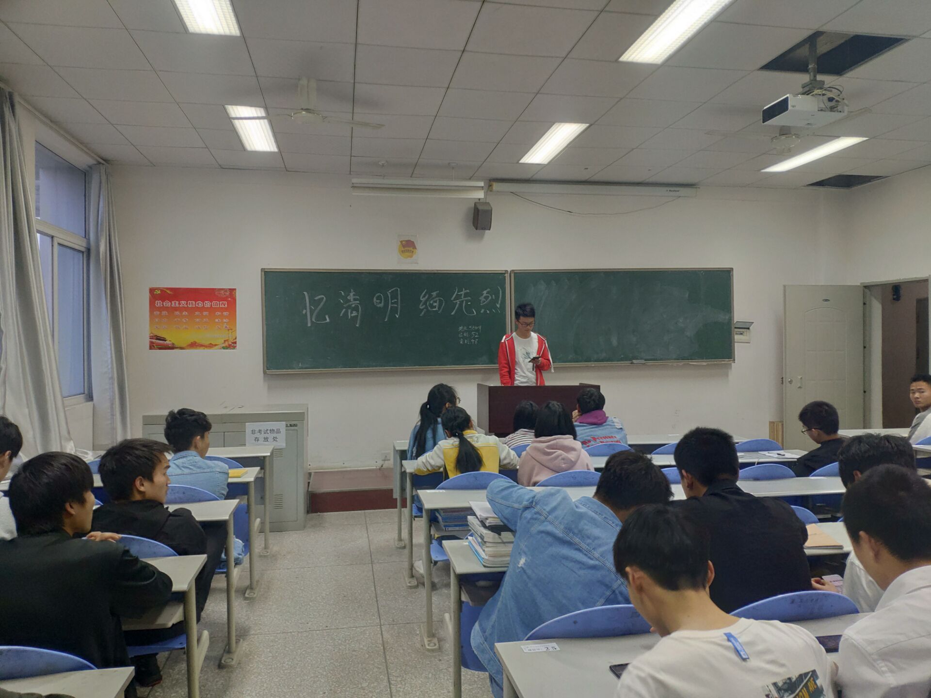 2019年3月31日19点整,新能源汽车技术三班于5B409开展亿清明,缅先烈主题班会。