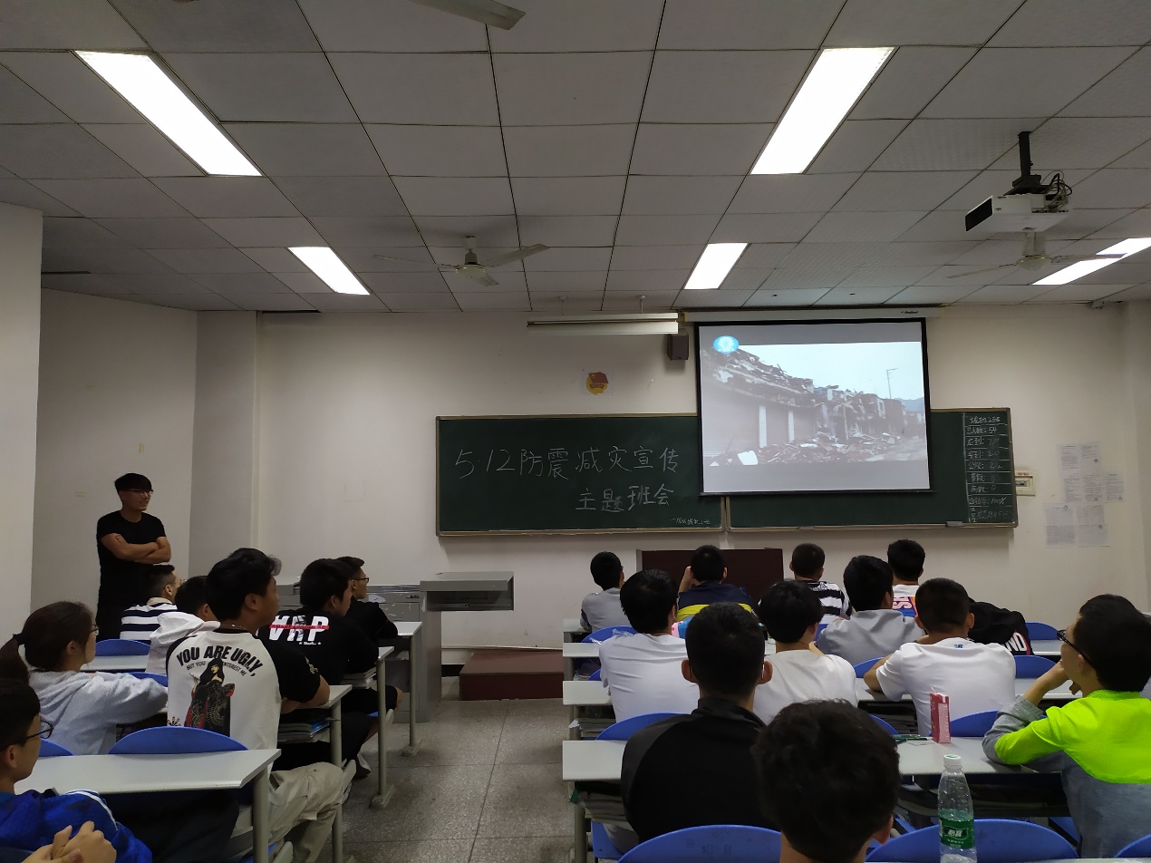 5月12日是防震减灾宣传日,应学校要求,5月4日晚7时,18级城轨2班在5B402教室开展了“5.12防震减灾宣传”主题班会,班会以“弘扬抗震救灾精神,全面提升防震减灾能力”的口号进行宣传。