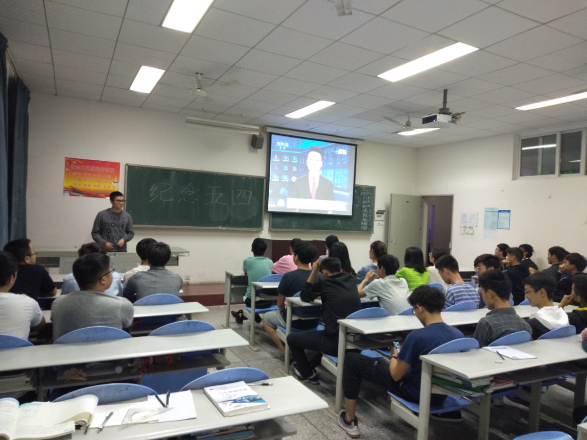 历史赋予我们神圣的使命,时代提供给我们千载难逢的发展机遇,让继承五四传统,弘扬五四精神,高擎五四火炬。本次主题班会圆满结束,由主持人郭杭宣布本次活动结束。同学们积极参与活动,认真观看视频,纪律良好。