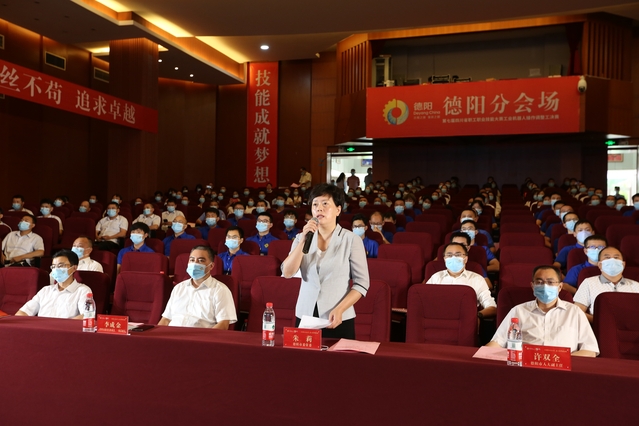 8月24日下午15时,大赛开幕式德阳分会场在我校第二教演讲厅隆重举行。中共德阳市委常委朱莉致辞,德阳市政府党组成员一级巡视员李成金、德阳市人大常委会副主任许双全、市政协副主席汪国参加开幕式。我校党委委员、院长肖峰,党委副书记、纪委书记、工会主席郑辅春,校工会常务副主席肖本川陪同参加。