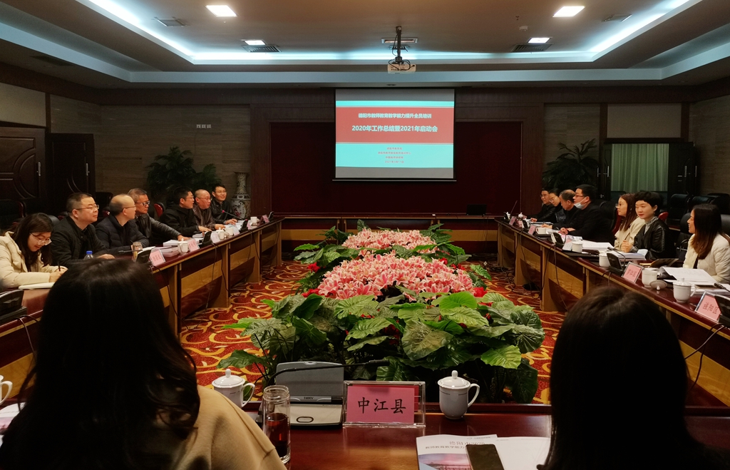 2021年3月11日,德阳市2020年教师教育教学能力提升全员培训工作总结暨德阳市2021年教师教育教学能力提升全员培训(以下简称“全员培训”)启动会在我校图书馆108会议室召开。德阳市人民政府专职督学严康、德阳市教育局师培科科长罗利明、学校培训中心主任张文龙、中国教师研修网副总编陈昌发,以及各区县培训机构负责人、区县师培部门负责人等20余人出席会议。