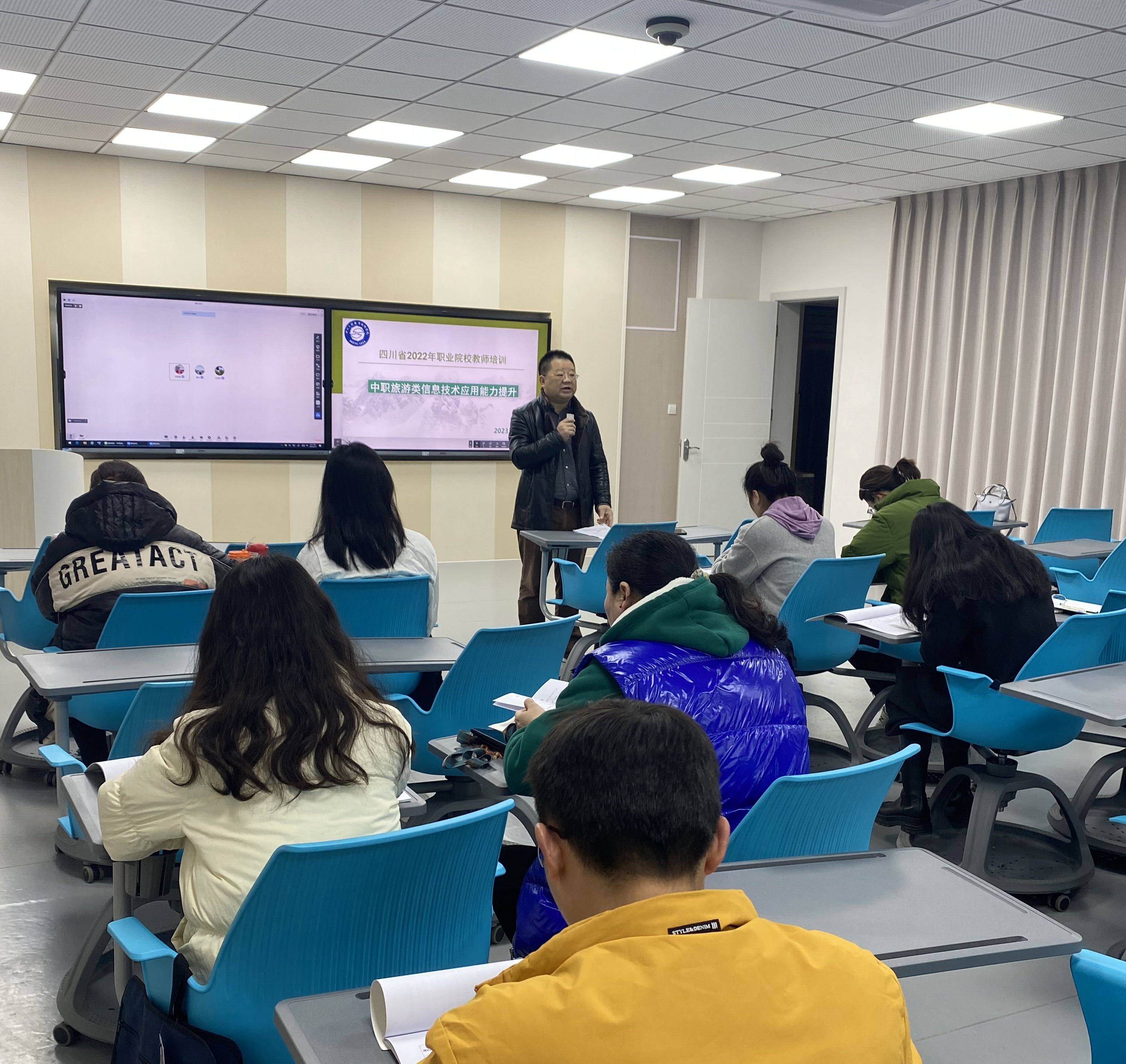 为进一步落实《国务院关于大力推进职业教育改革与发展的决定》中关于“大力加强职业教育的信息化建设,推进信息技术在教育教学过程中的运用”的要求,2月27日,为期14天的四川省2022年度职业院校教师素质提高计划“国培项目”——“旅游服务与管理专业信息技术应用能力提升”培训在我校顺利开班。