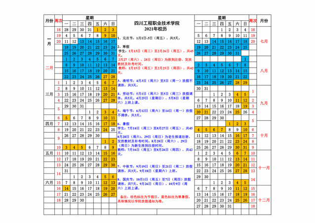 2021年校历