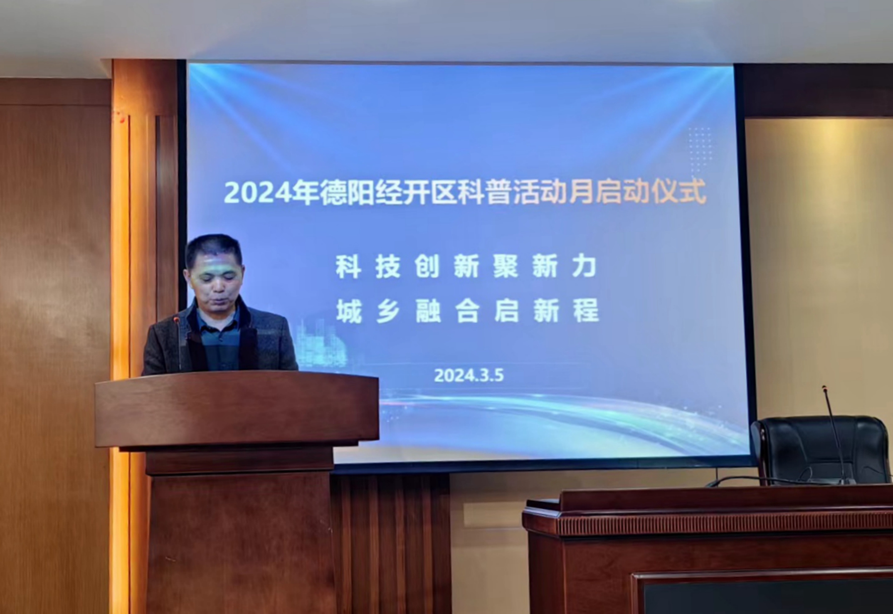 启动仪式上,德阳经开区工信局副局长杨荣德致辞。他强调,科技创新是推动发展的核心动力,是推动城乡融合发展的关键所在。此次科普活动为推动区域经济社会高质量发展注入新的动力。
