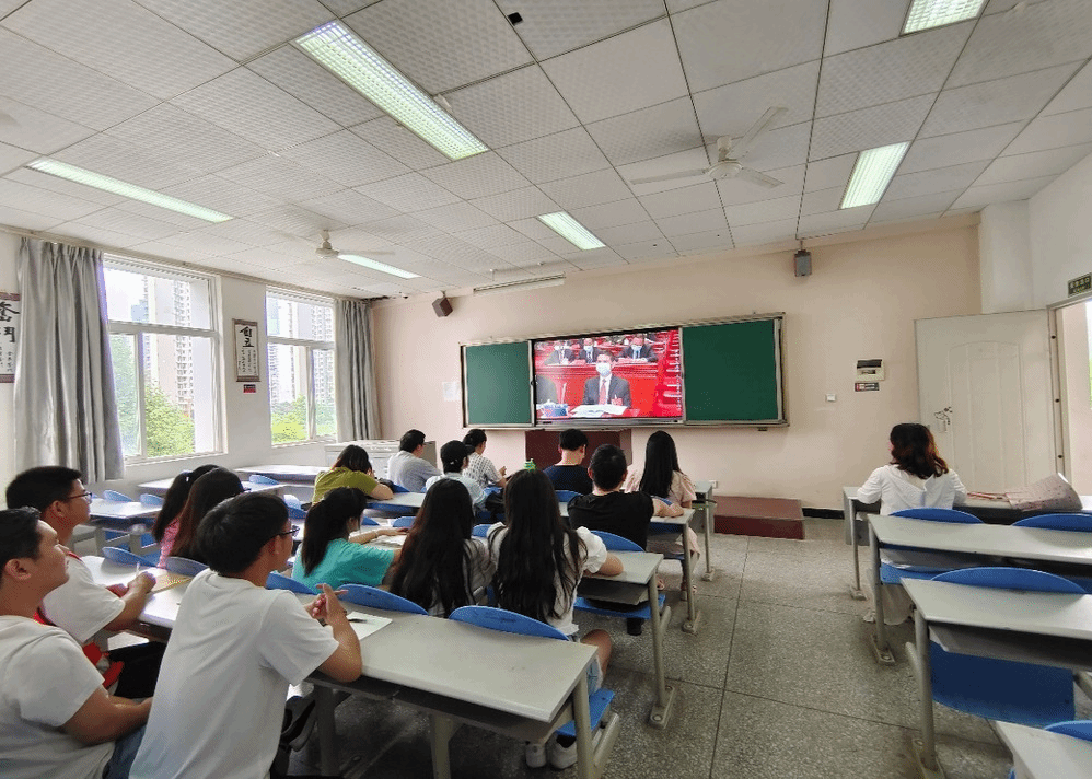 2022年5月30日14:00工程造价专业党支部师生在5B305采用集中收看方式观看了四川省第十二次代表大会开幕盛况。