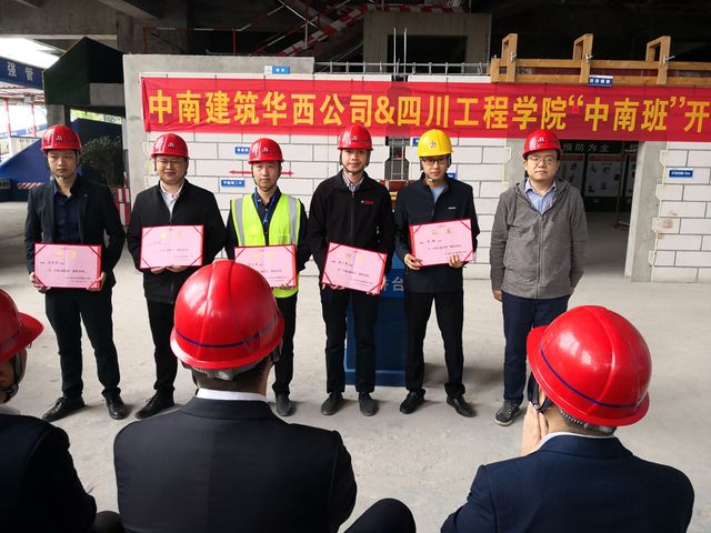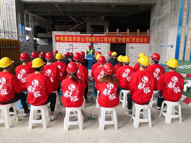 10月16日,四川工程职业技术学院和中南建筑华西公司“中南班”开班仪式在成都温江工地上举行。参加仪式的有建筑工程系主任蒋明慧、建筑工程系副书记(主持工作)曾令俊、建筑工程系主任助理唐延东、中南建筑华西公司总经理荣师付等领导,以及中南建筑华西公司的各位企业技术人员和建筑工程系的各位专业老师。仪式由中南建筑华西公司人事总监韩水华主持。