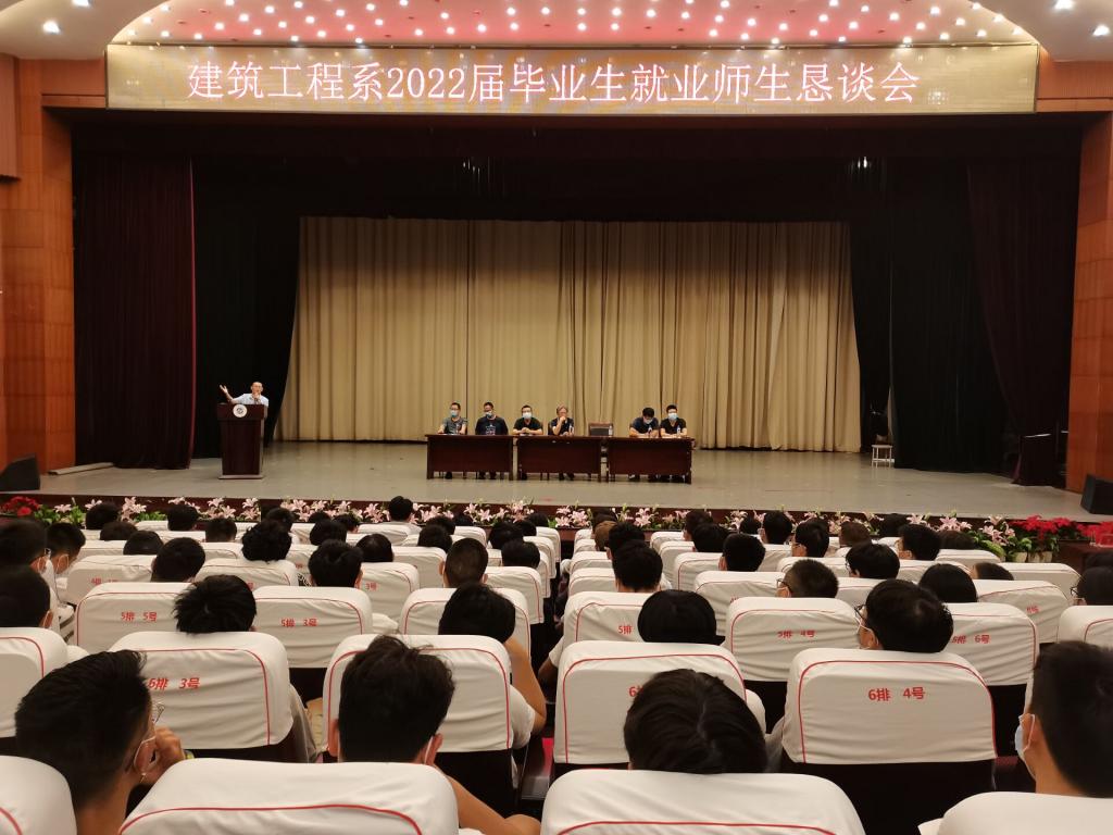 为了给2022届毕业生指引并扩展就业的思路,建筑工程系蒋明慧主任、曾令俊书记、建筑工程系教授委员会吴建文主任,系部学生干事张维老师、招生就业办郑黎老师以及系部各位教学干事和辅导员于2021年9月2日下午4点20分在二教演播厅召开了“建筑工程系2022届毕业生就业师生恳谈会”。