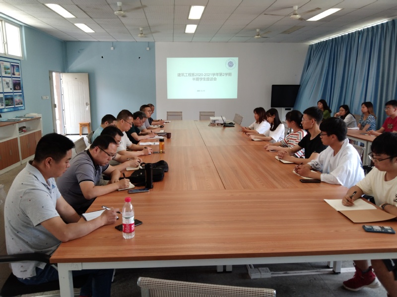 为加强教学管理,及时调整教学计划,提升教育教学水平,对接“双高建设”,建筑工程系5月11日下午在5A401举行半期学生座谈会。大会由系党政办主任曾令俊主持,系部党政领导、各教研室主任、教学干事和19、20级各班学习委员参加。会上各班学习委员简要汇报半期以来学习情况,以及学习中遇到的问题。