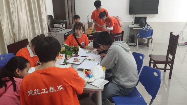 志愿者们充分结合自身专业特长与技术特色为乡村建设增添一份力量。建筑装饰专业小组为当地农家乐经营者们讲解了建筑装饰的相关知识,并结合具体情况和现实需要为他们提出了装饰意见;园林工程技术小组利用当地的花卉和草本植物,开展生动地插花艺术讲解,并将完成的插花作品留赠当地村民,深受村民喜爱;志愿服务团队带领村里留守儿童一起打扫阅览室、阅读书籍、做趣味游戏、教小朋友们创作绘画作品,引领陪伴式活动提高了小朋友们的阅读自觉、绘画兴趣和环保意识。