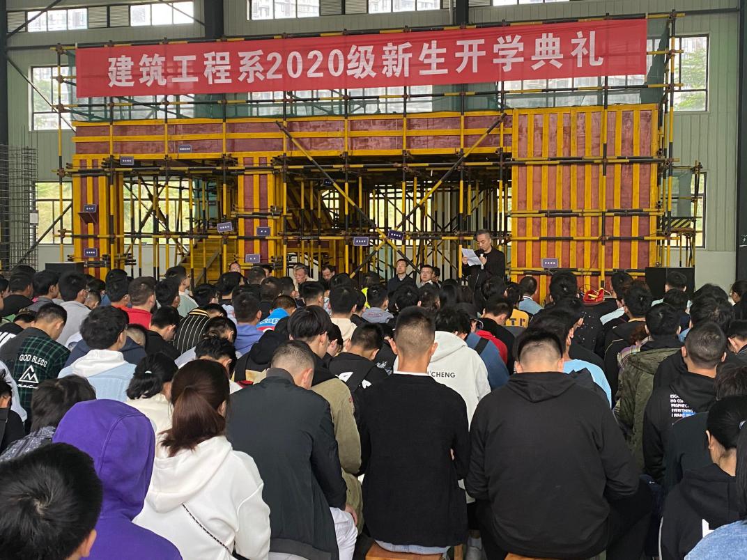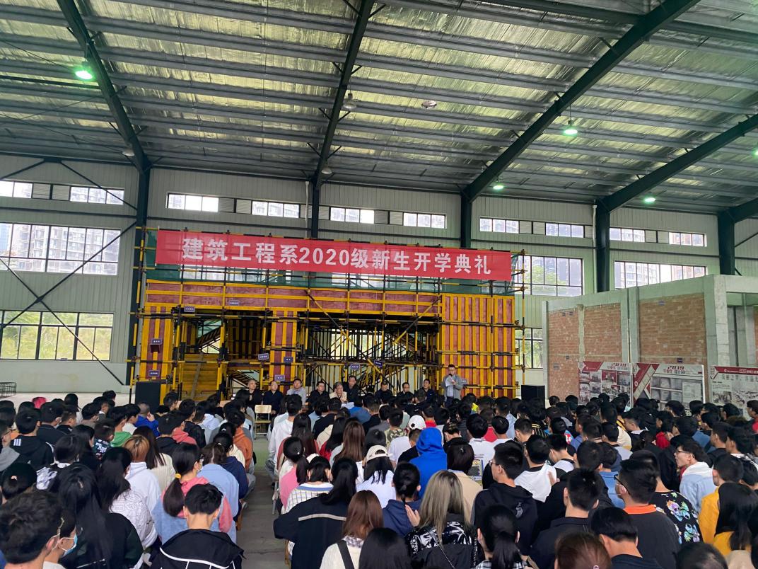 2020年10月11日上午,建筑工程系在建筑实训资源中心举办了2020级新生开学典礼,系部领导、各教研室主任和教师代表参加典礼。