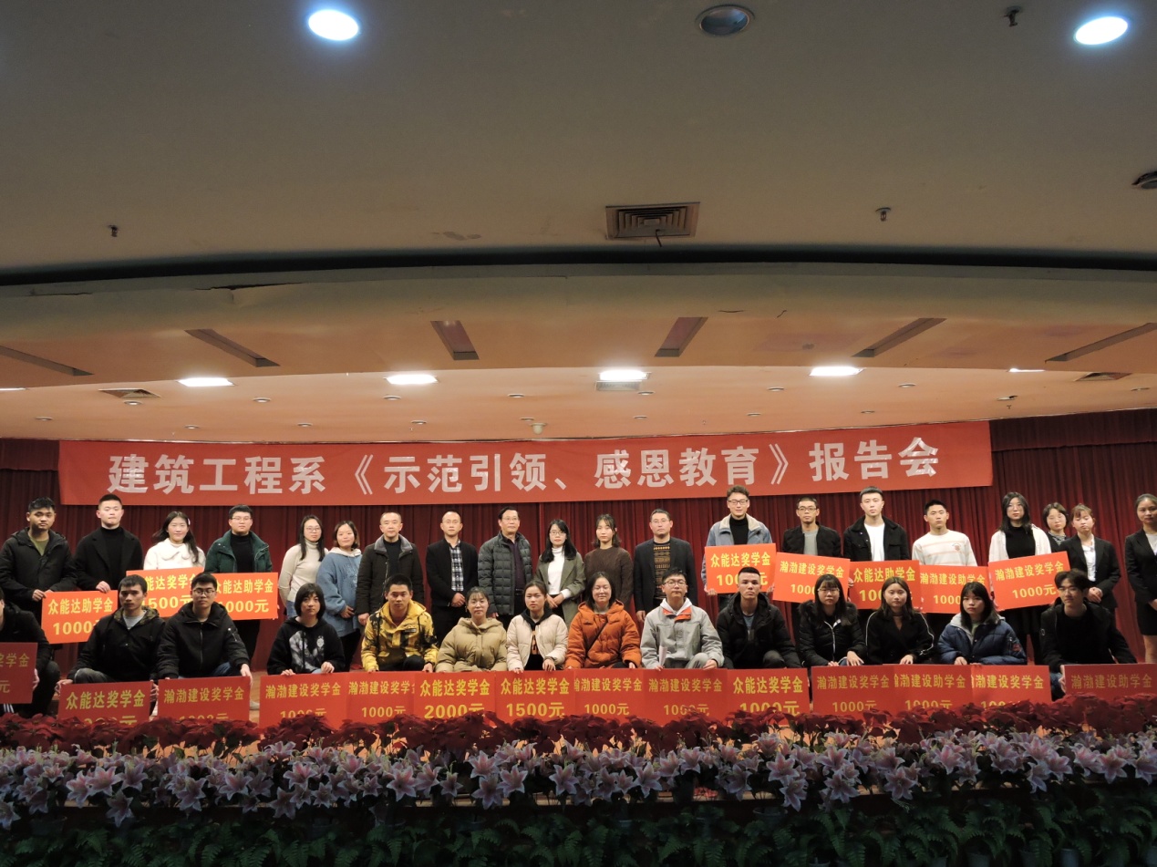 国家奖学金、国家励志奖学金评选工作已经结束,为进一步促进我校学风和校风建设,充分发挥国家奖学金、国家励志奖学金获奖学生的示范引领作用,我系于2019年12月11日(星期三)下午4:30分,组织大一、大二国家奖助学金获得者和部分学生,在学校图书馆三楼多功能厅举行《示范引领、感恩教育》报告会。学院资助中心主任李秀平老师、就业办副主任唐军老师、四川瀚渤建设有限责任公司、四川众能达建设有限公司领导和系部领导、班级导师及辅导员班主任出席了此次报告会。