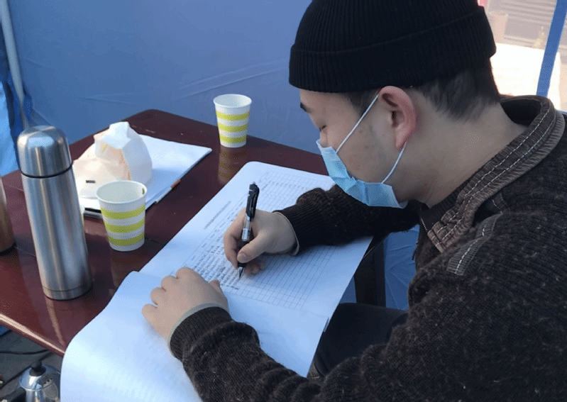 2018级工程造价4班付彦冰在成都市温江区做社区疫情数据统计