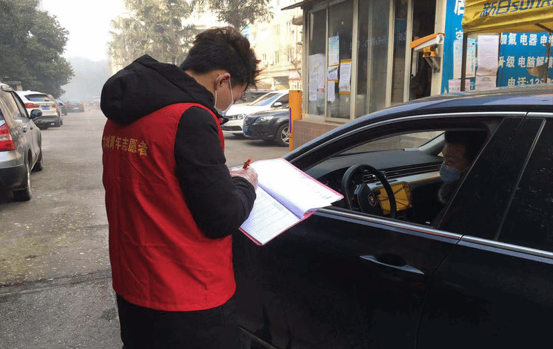 2018级建筑工程2班王红伟,在家乡泸州泸县,和县团委的人工作人员一起对所管辖的小区进行人员车辆的进出登记,检查。