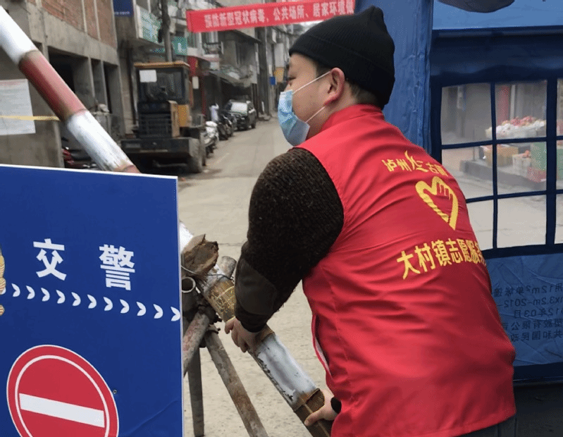张德勇,资阳当志愿者,疫情防范宣传、小区外来人员、车辆登记、体温测量。