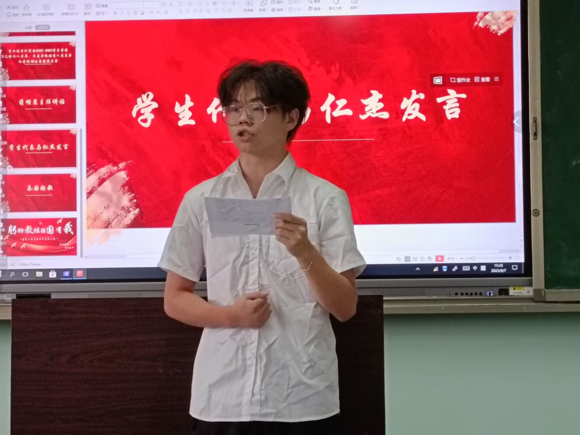 首先,曾令俊书记宣读了2022-2023学年学校先进个人评选文件和先进个人名单、年度考核优秀人员名单以及系部岗位技能大练兵暨说课比赛获奖名单。并为在系部说课比赛中获奖的教师颁发了获奖证书。优秀教师代表,有着30多年从教经验的侯倩萍教授从学校、系部的发展、取得瞩目成就和从教的相关经验等方面做了发言,发言极大地激励和鼓舞了全系教师。随后学生代表,2022级建筑工程技术2班马仁杰同学做了感谢师恩的发言。