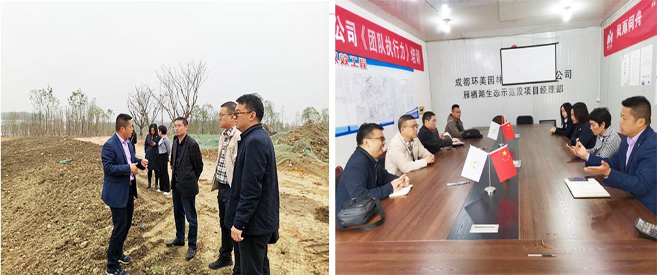 调研团队一行首先来到了公司位于天府新区的雁栖湖生态湿地项目现场,听取了李祥飞项目总监对项目情况的介绍并在实地进行了参观。