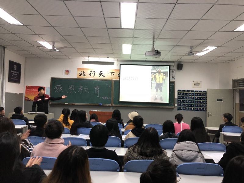 2018年12月16日晚7点,旅游管理系全系23个班级认真组织开展了关于“感恩、诚信教育”主题班会。辅导员、班主任和班级全体同学参与了此次班会。班会上,各班通过视频、文字、图片以及现场的案例分享和交流,展开了对感恩、诚信的学习和解读。特别是此次国家奖助学金获得者,他们对国家资助深怀感恩,也表达了自己接下来将用实际行动回报这份资助之情。
