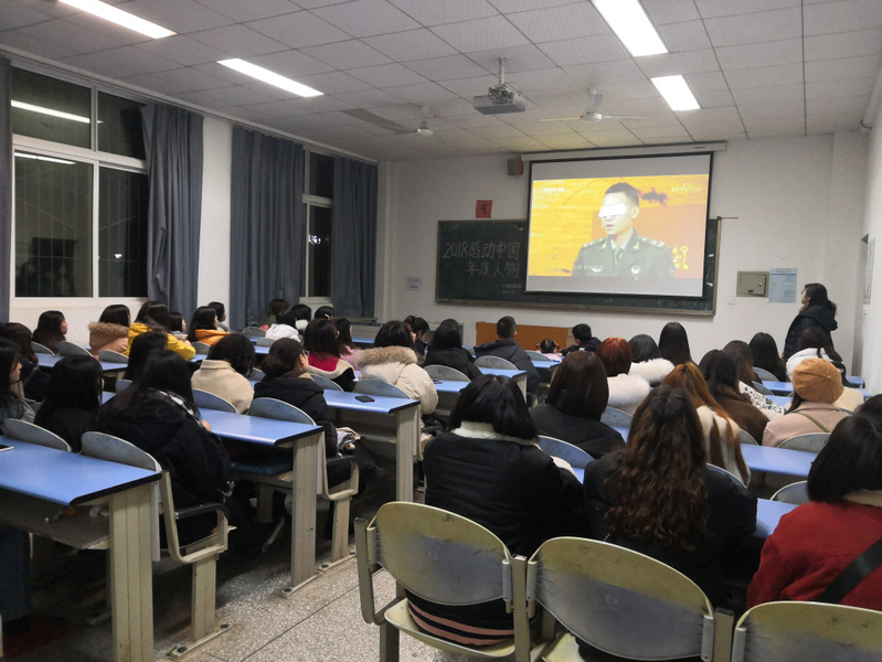 全体成员通过观看视频“2018感动中国人物颁奖典礼”,学习我国平凡而伟大的先进人物的事迹。两弹一星功勋程开甲,把生命献给高原的植物学家钟扬,守岛卫国32年的民兵夫妇王继才、王仕花,生活节俭却捐赠千万的退休老人马旭,不畏牺牲的排雷战士杜富国,勇斗歹徒的退伍军人吕保民,危急时刻安全降落的英雄机长刘传健,雪域邮路上的忠诚信使其美多吉,坚守扶贫一线的基层干部张渠伟,担起未来的80后乡村教师张玉滚。他们用自己的事迹将“伟大”与“平凡”画上等号,用无私奉献感动中国亿万人民!